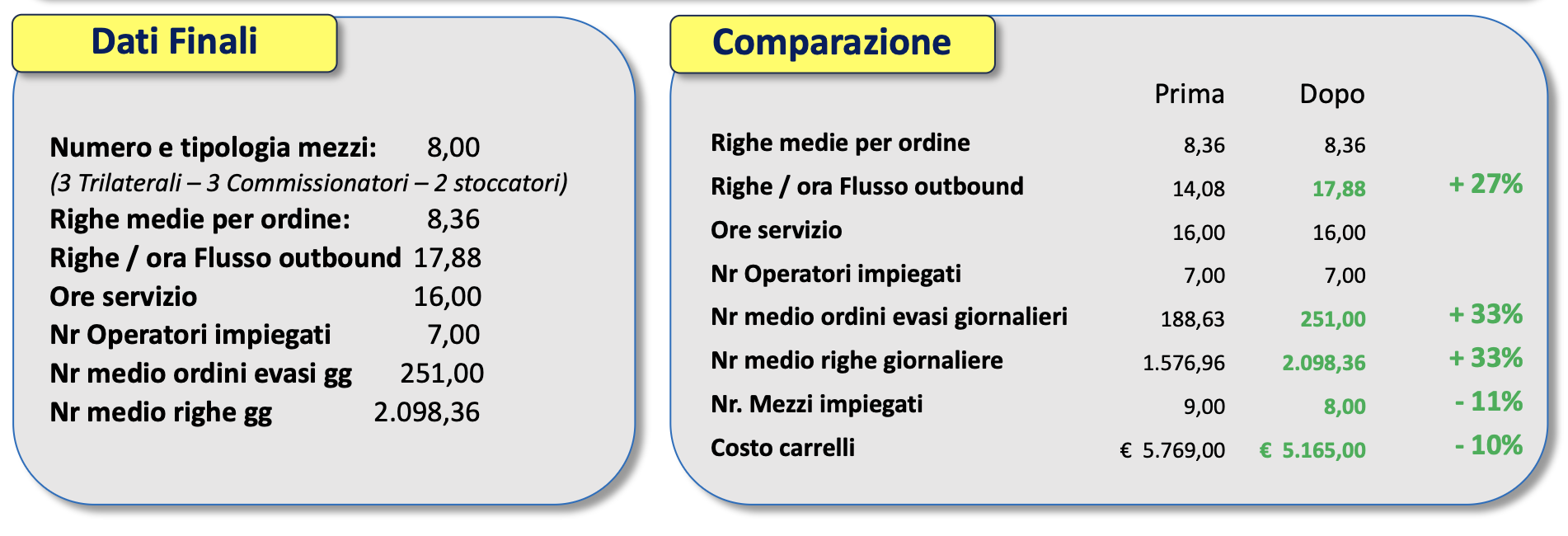 Flussi out: Miglioramento dei tempi di prelievo e riduzione della viabilità dei carrelli grazie alla minore necessità di cambiare corsia di prelievo.